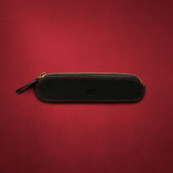 The YKK brass zipper, with its timeless gleam, runs along the top like a protective gate, keeping your pen secure wherever you go. Inside, an ingenious leather flap shields the pen from contact with metal, ensuring its surface remains flawless through every journey. And beneath it all lies a bed of plush velvet lining—soft, reassuring, and made to offer your pen the comfort it deserves.